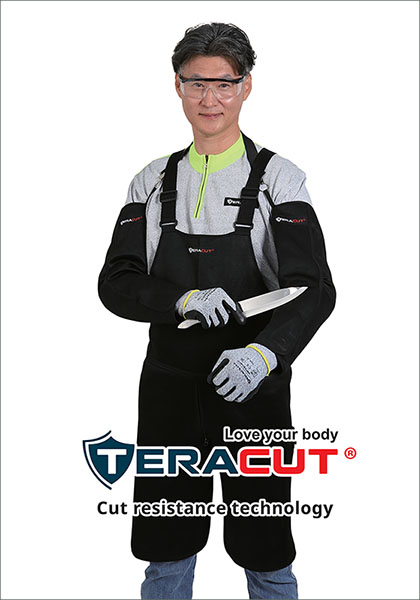 TERACUT® is a premium brand that represents innovative high-performance cut protection. TERACUT® protectors and gloves are manufactured by knitting 7 to 21 different thicknesses using high-level engineering yarn processing and knitting technology. In addition, good cutting resistance and strong durability demonstrated by EN 388 and ANSI/ISEA 105-2016 regulations will protect workers from cutting and accidents at industrial sites.